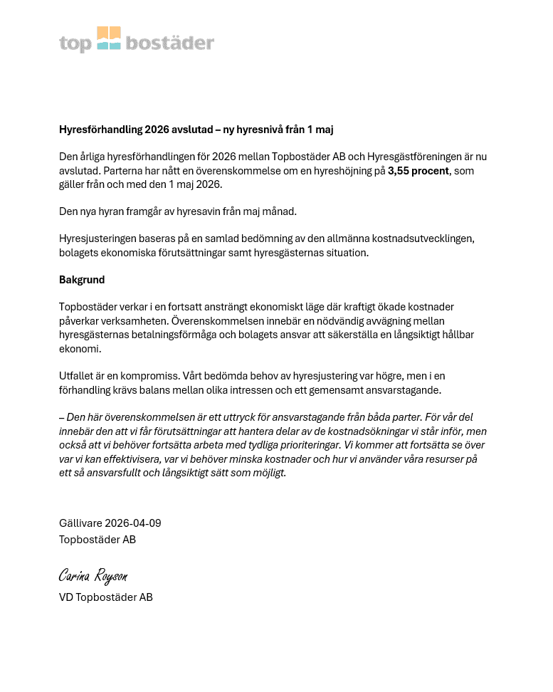För att få hyra en lägenhet hos Topbostäder så kräver vi att man tecknar en [...]